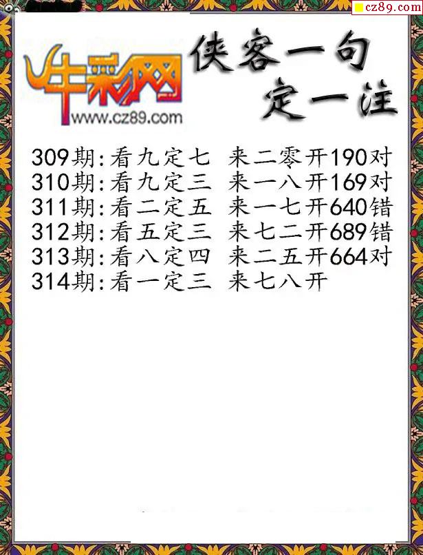 > 福彩3D2025314期侠客一句定三码字图谜