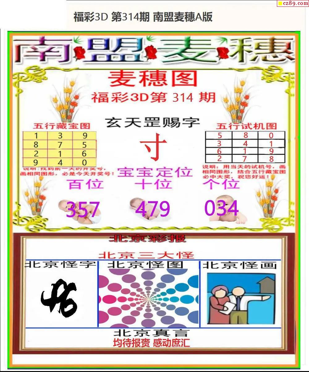 > 福彩3D2025314期南盟麦穗AB版+南盟扣号AB版